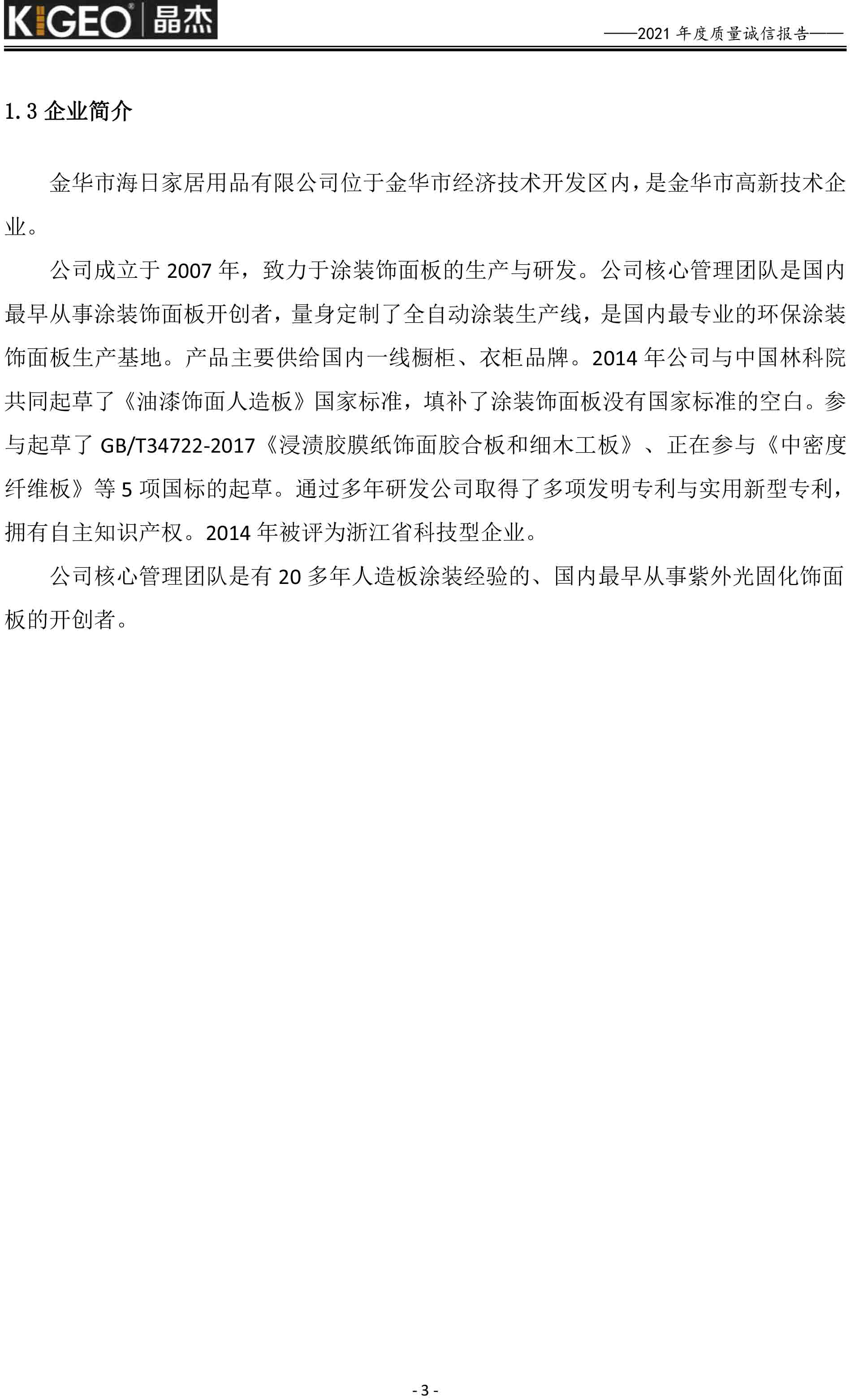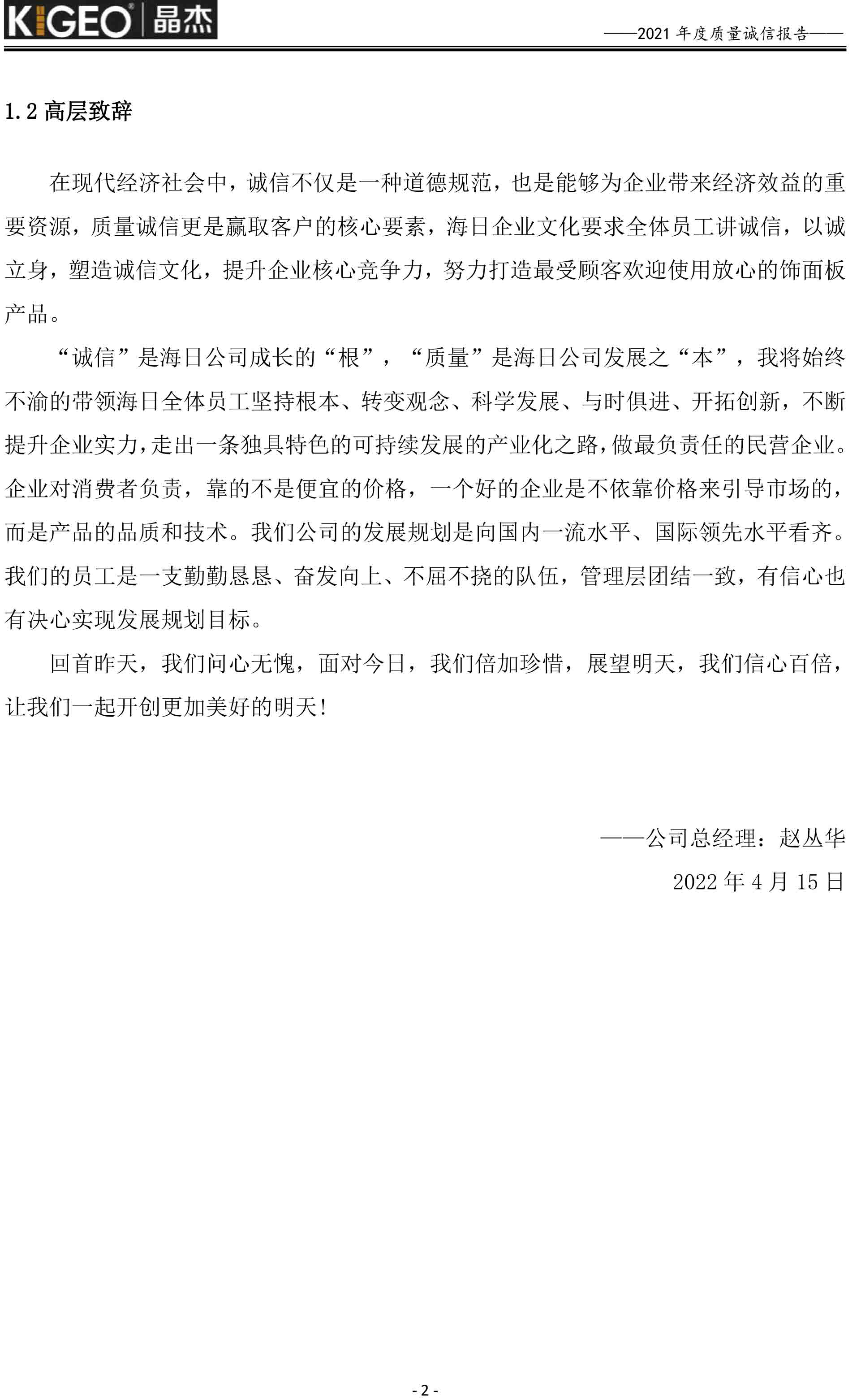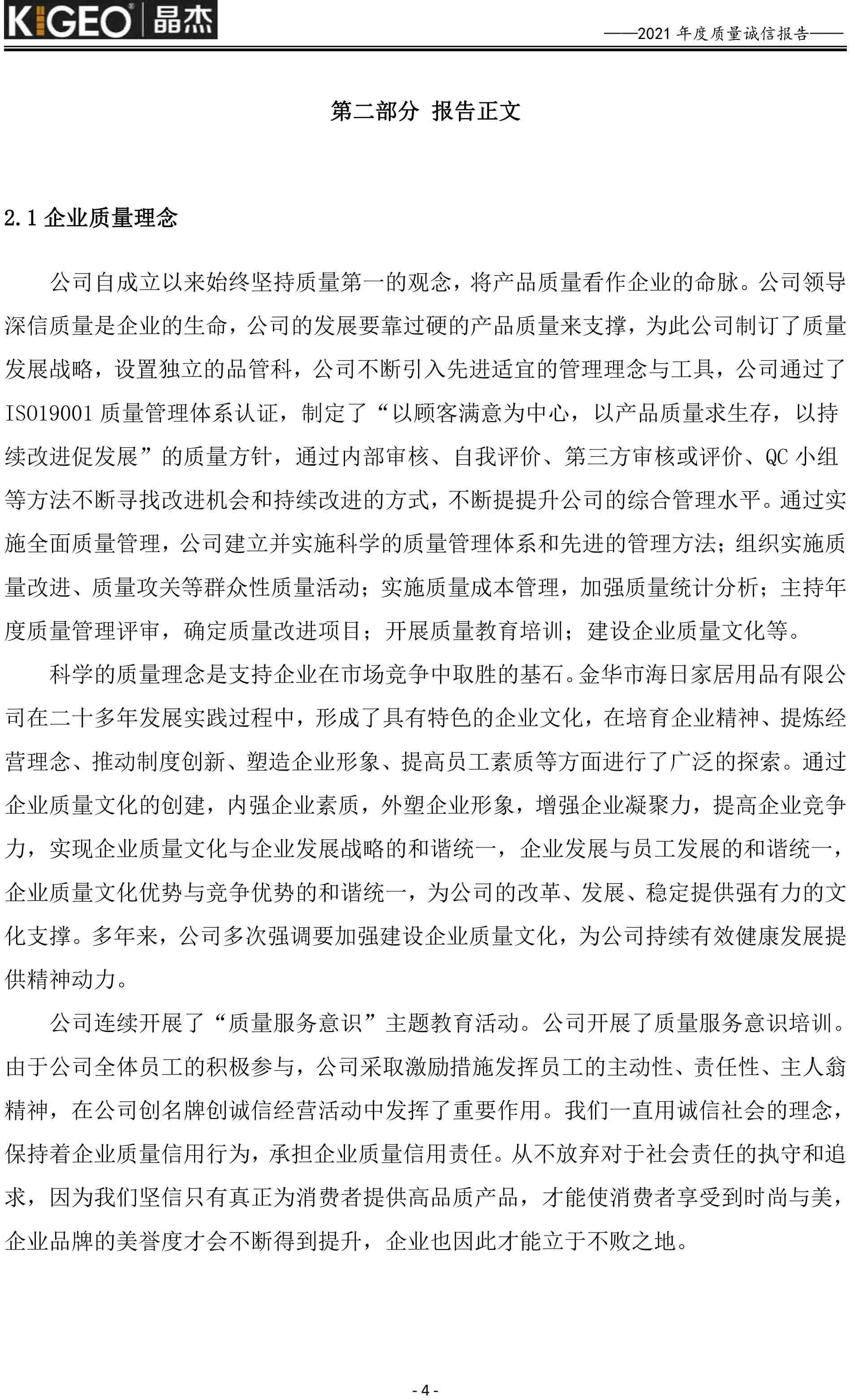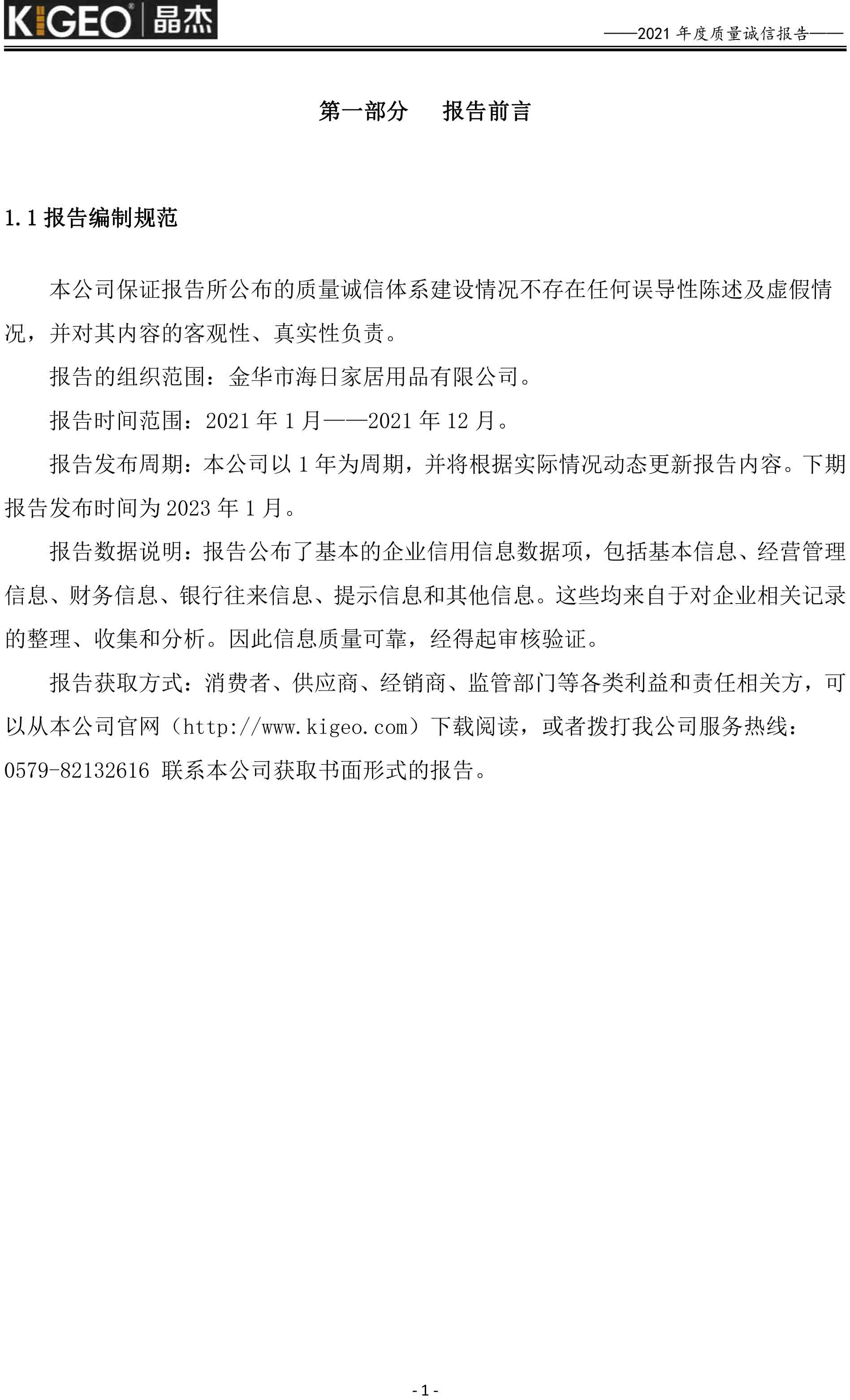 金華市海日家居用品有限公司 2021 年度 質(zhì)量誠(chéng)信報(bào)告