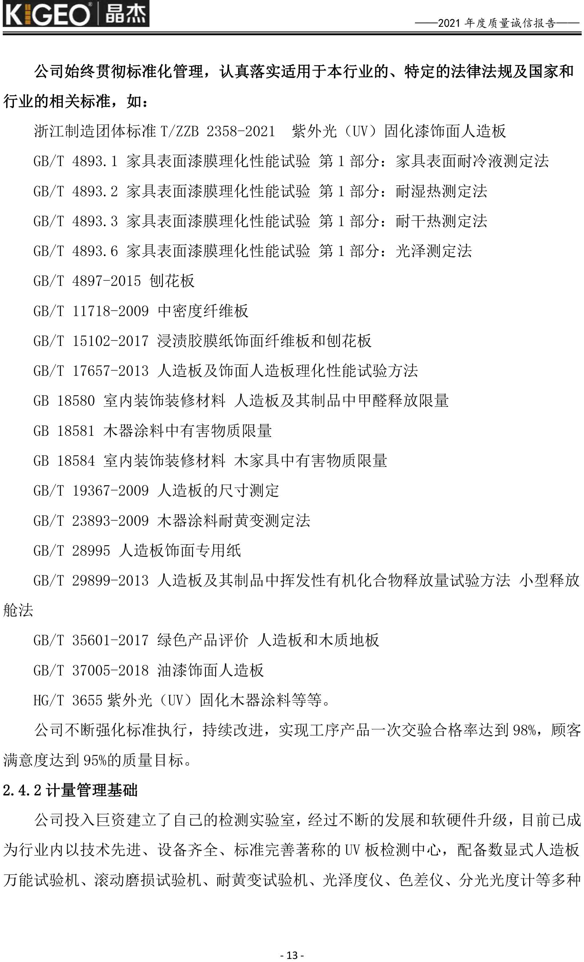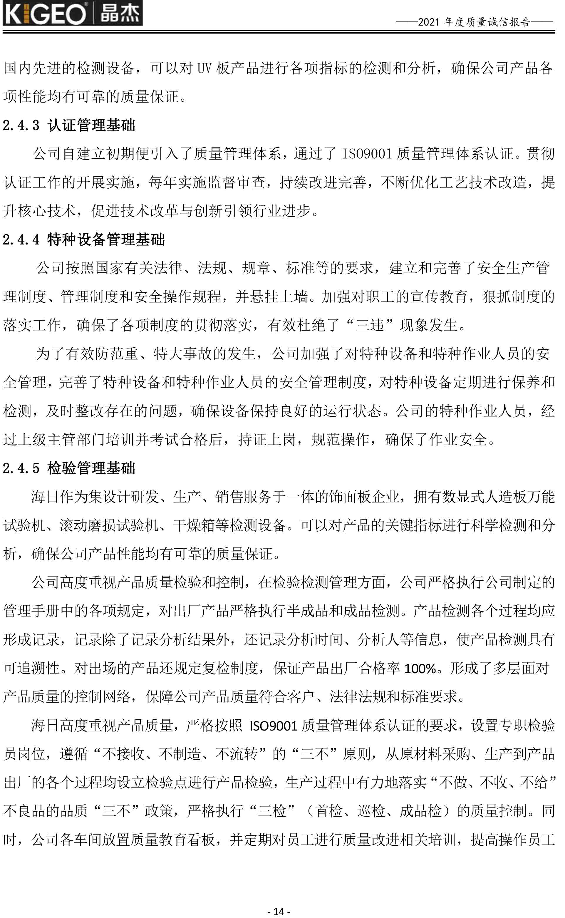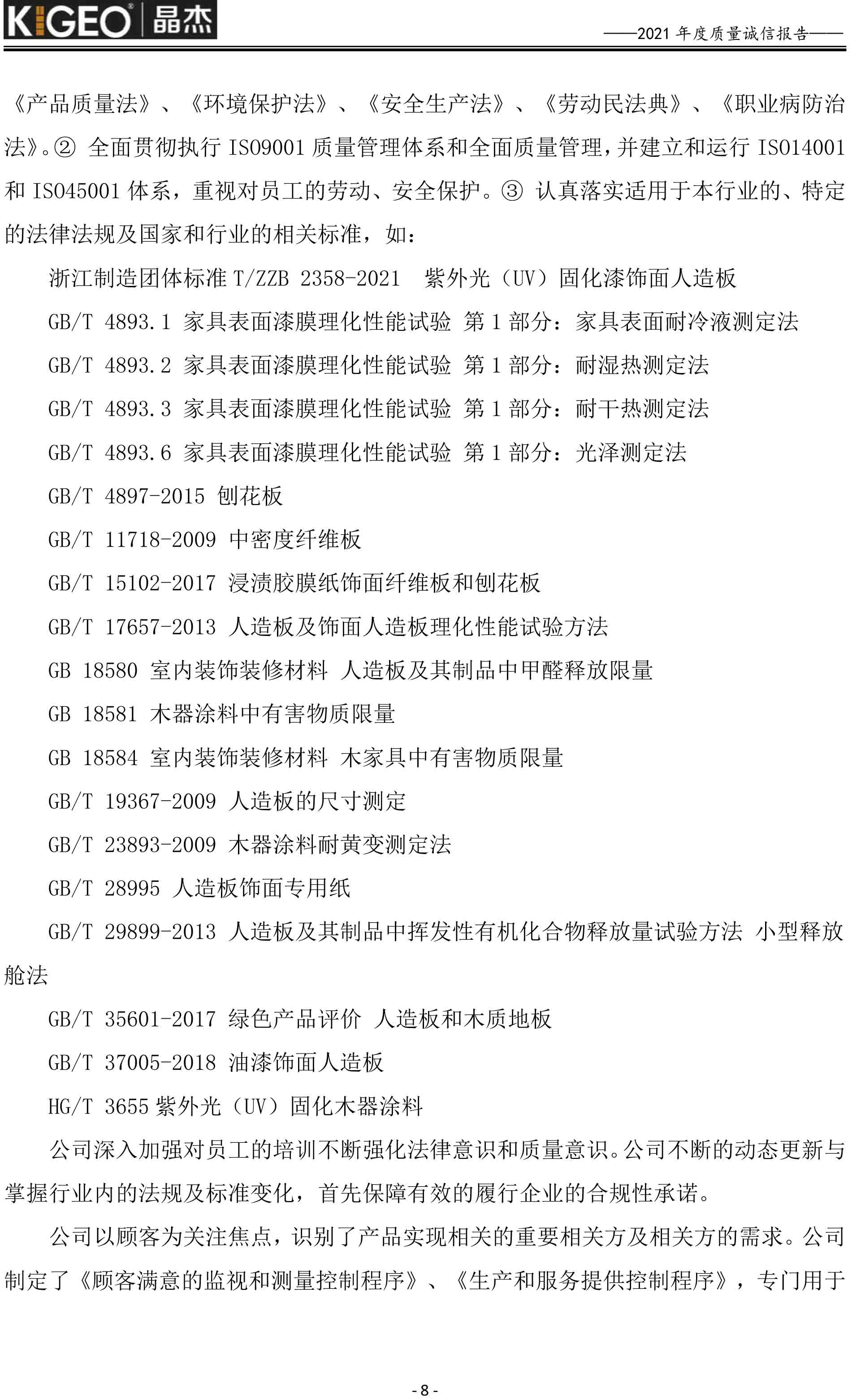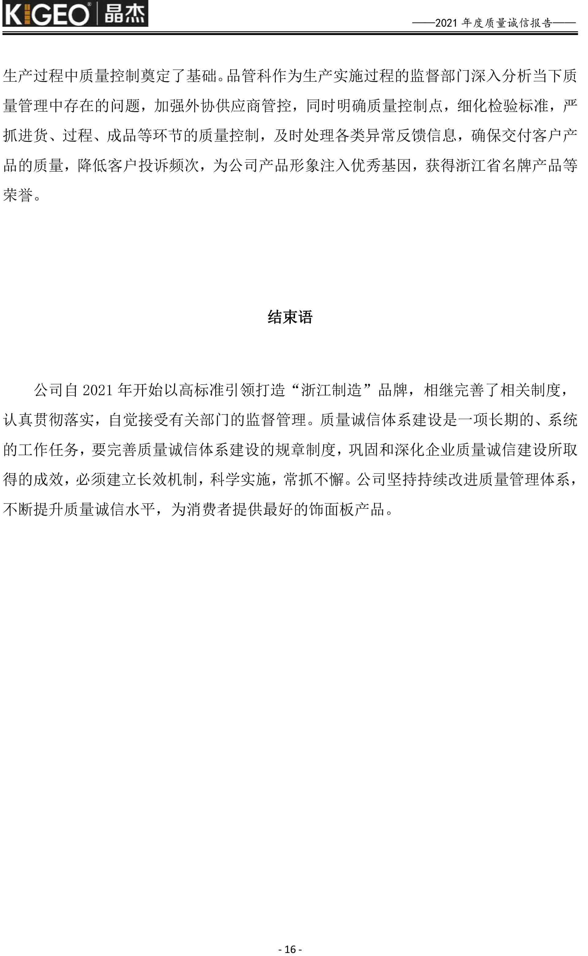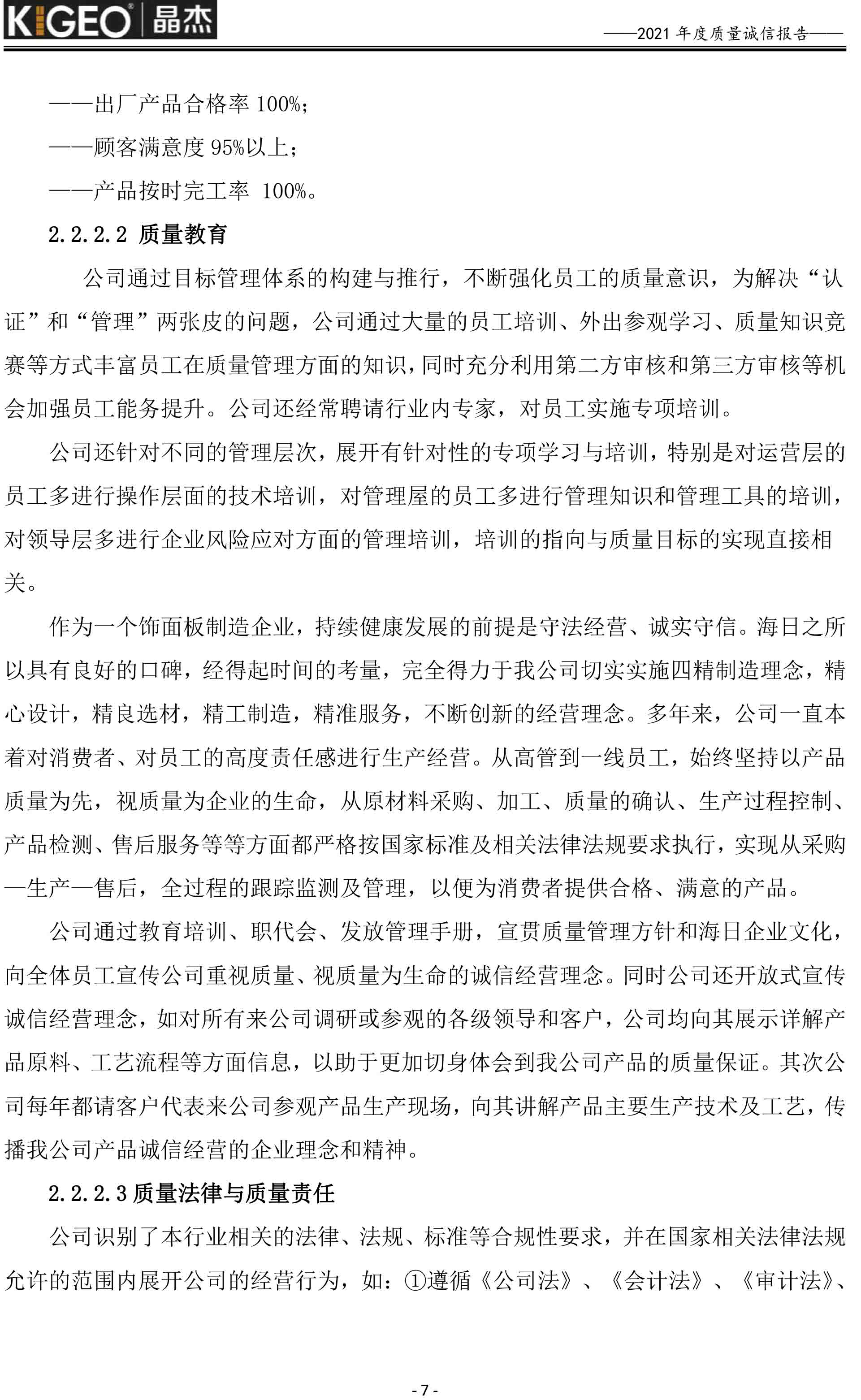 金華市海日家居用品有限公司 2021 年度 質(zhì)量誠(chéng)信報(bào)告